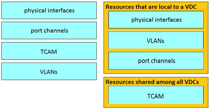 Drag and drop the Cisco Nexus 7000 Series Switch resources from the left onto the correct groups on