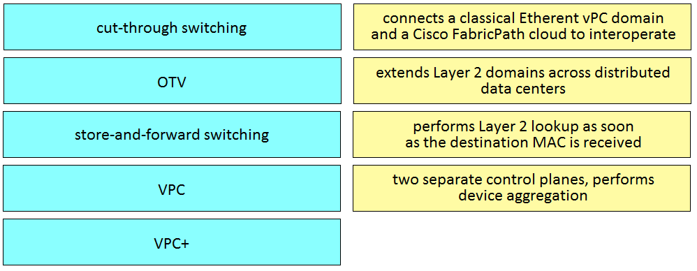 Drag and drop the data center technologies from the left onto the correct descriptions on the right.