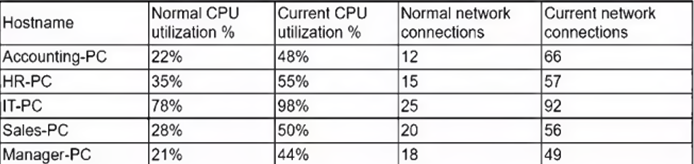 Several users have opened tickets with the help desk. The help desk has reassigned the tickets to a security analyst for further review. The security analyst reviews the following metrics: