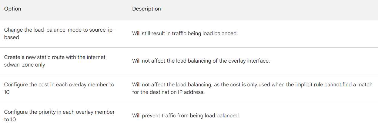 In the SD-WAN implicit rule, you do not want the traffic load balance for the overlay interface when