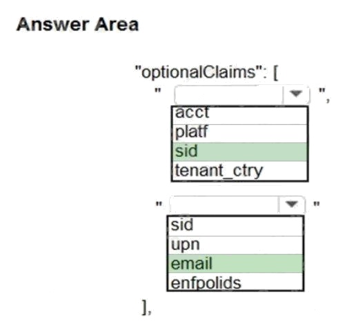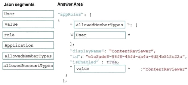 Box 3: value value specifies the value which will be included in the roles claim in authentication and access tokens.