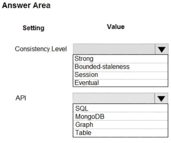 Which settings should you use? To answer, select the appropriate options in the answer area.