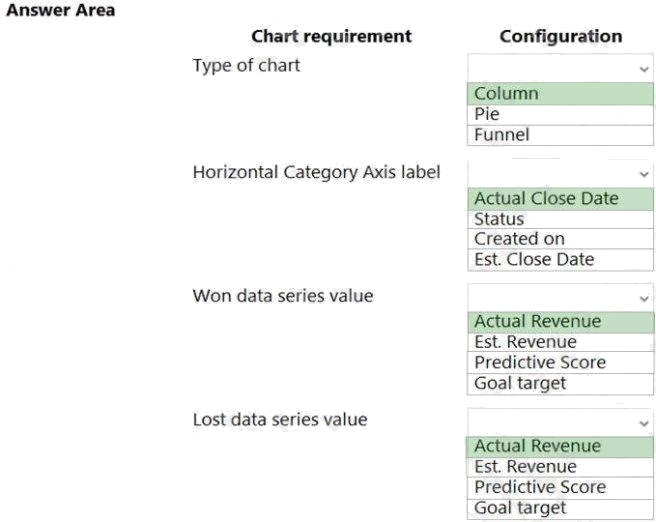 How should you configure the chart? To answer, select the appropriate options in the answer area.