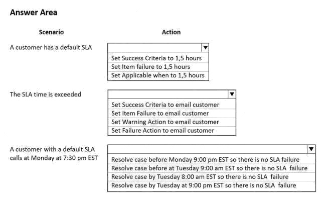 Reference: https://docs.microsoft.com/en-us/dynamics365/customer-service/define-service-level-agreements