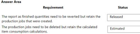 Which status should you use for each requirement? To answer, drag the appropriate statuses to the correct requirements. Each status may be used once, more than once, or not at all. You may need to drag the split bar between panes or scroll to view content.