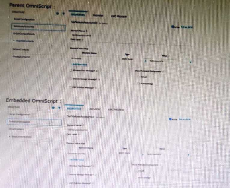 A customer sets up two LWC OmniScripts, one embedded into another. AccountId is set in a Set