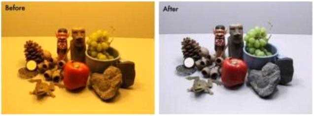 Which setting would best adjust a hard yellow tint as shown in the pictures below?