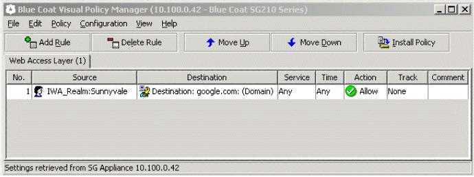 The default policy for ProxySG is DENY. Network administrator creates a VPM policy allowing access