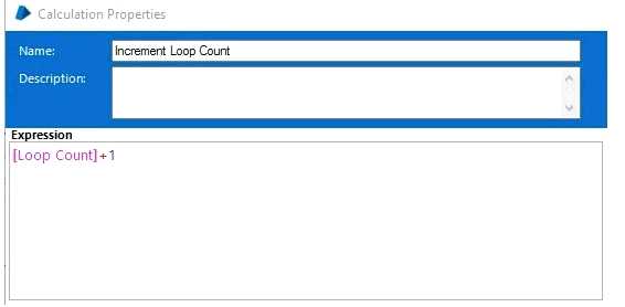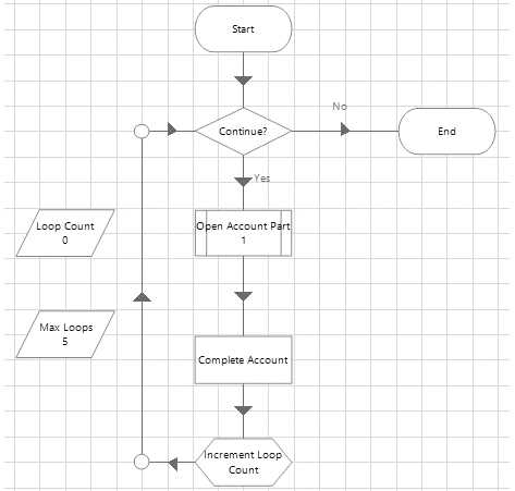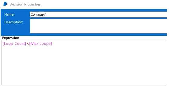 The initial values for the Loop Count and Max Loop data items are 0 and 5 respectively.