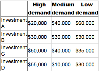 A company is considering four mutually exclusive projects. There are three possible future demand