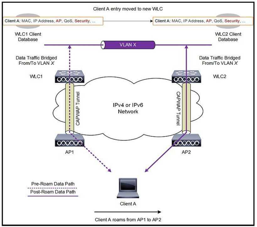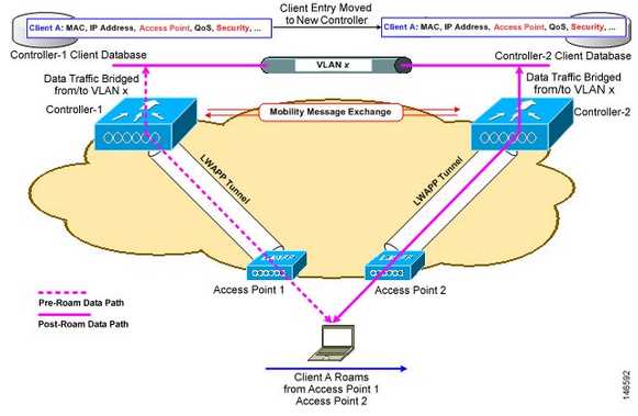 with interfaces in the same client subnet, the controllers will exchange mobility control messages