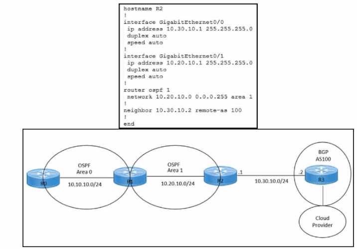 router R2 to advertise those routes to router R1 and connect the on-premises network to the cloud