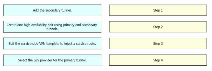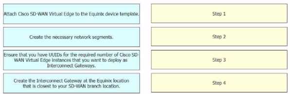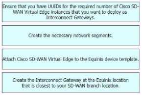Drag the prerequisite steps from the left onto the order on the right to configure a Cisco SD-WAN