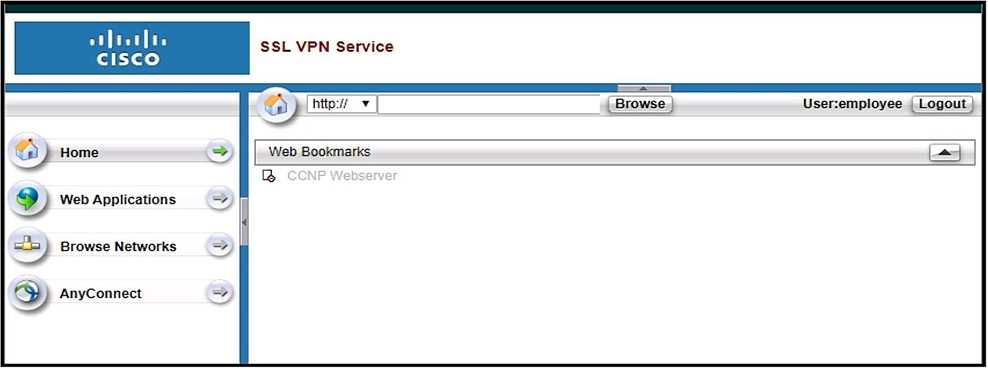 Based on the exhibit, why are users unable to access CCNP Webserver bookmark?