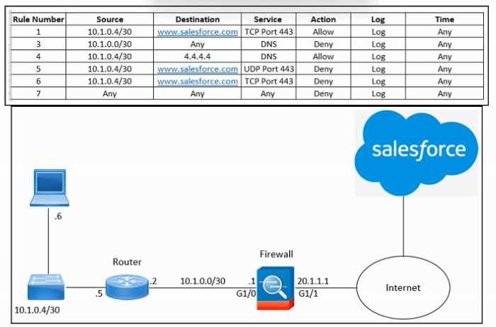 address 10.1.0.6 to access the Salesforce login page at https://www.salesforce.com. The indicated