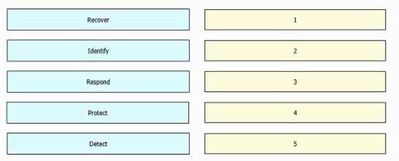 Drag and drop the five core functions from the left into the order defined by the NIST Cyber security