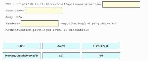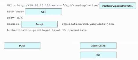 Refer to the exhibit. Drag and drop the snippets into the RESTCONF request to form the request that