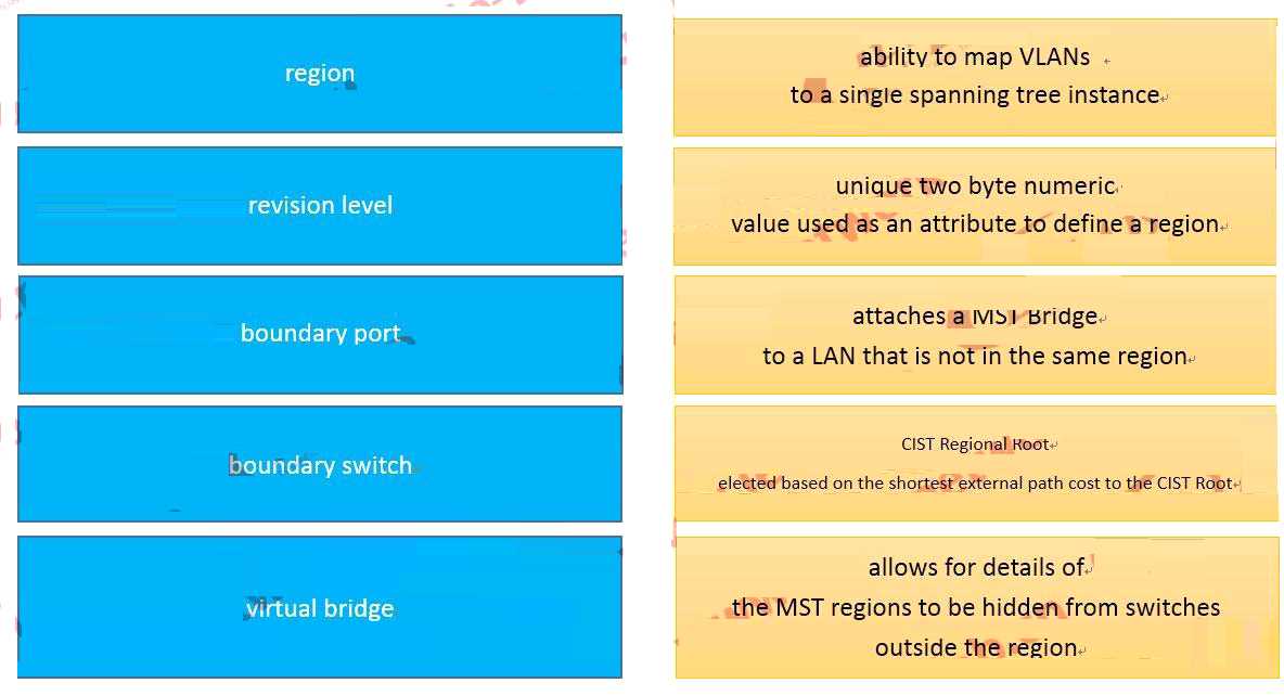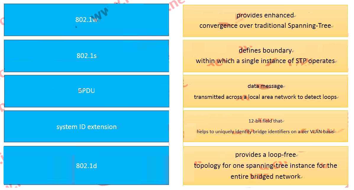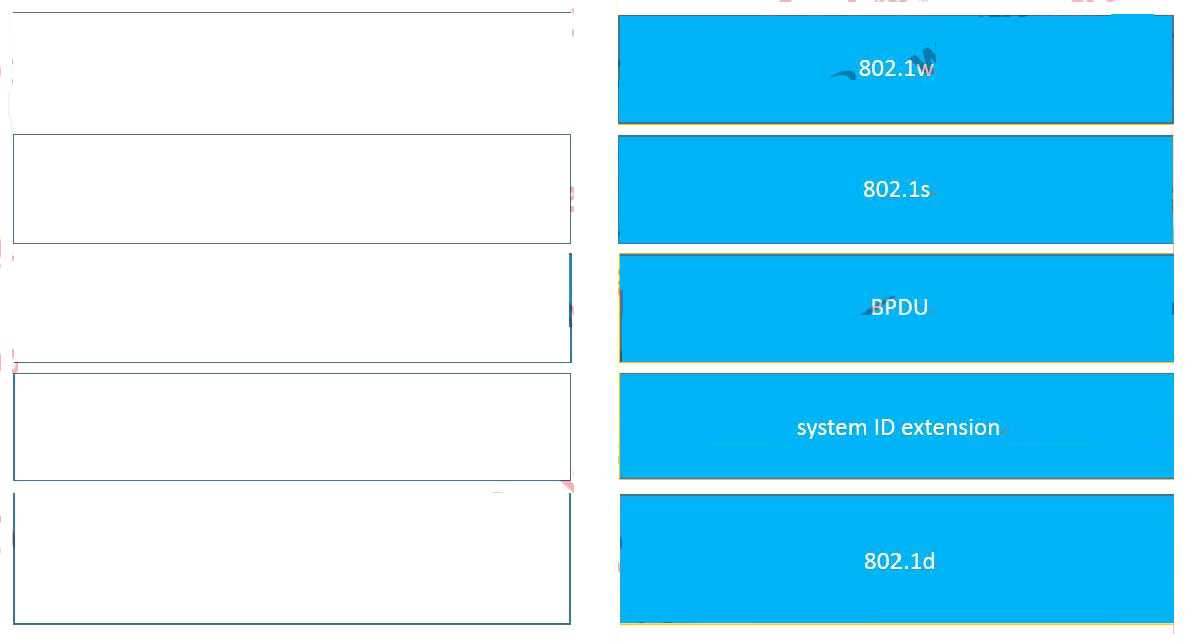 Drag and drop the MST Spanning Tree protocol standards from left onto the correct characteristics on