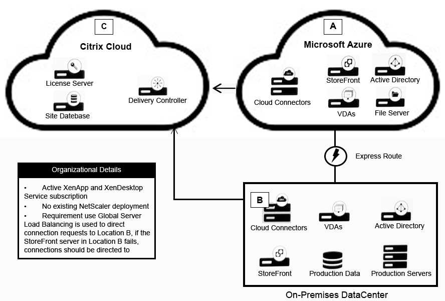 environment which will include Citrix Cloud as well as resource locations in on-premises datacenter