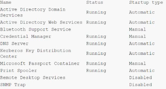 A security administrator has been tasked with hardening a domain controller against lateral movement attacks. Below is an output of running services: