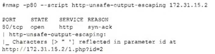 The security team reviews a web server for XSS and runs the following Nmap scan: