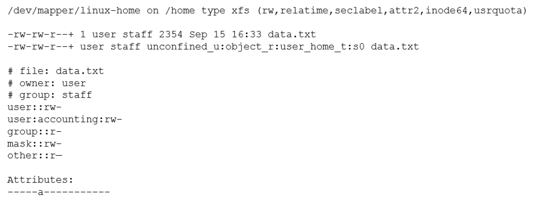 A Linux administrator is trying to remove the ACL from the file /home/user/data. txt but receives the following error message: