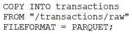 transactions. Each day’s sales are in their own file in the location "/transactions/raw".