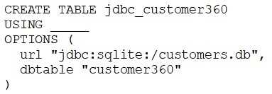 database being connected to in a JDBC connection string. The USING clause should be followed by
