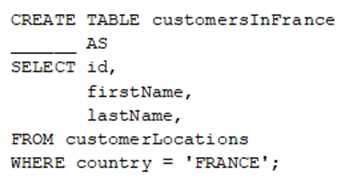 A data engineer wants to create a new table containing the names of customers that live in France.