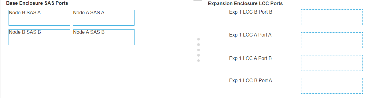Match the base enclosure SAS ports in column A to their corresponding expansion enclosure LCC