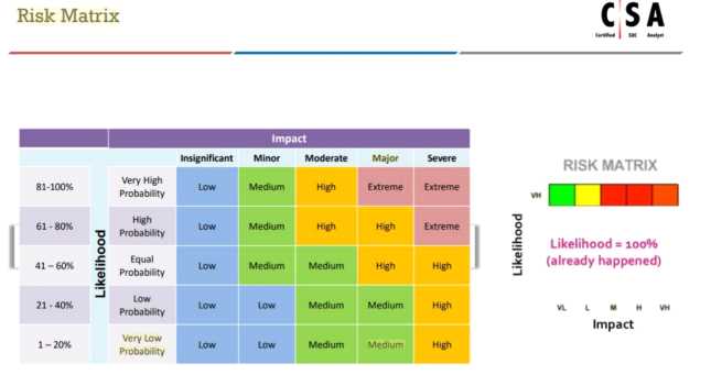 According to the Risk Matrix table, what will be the risk level when the probability of an attack is very