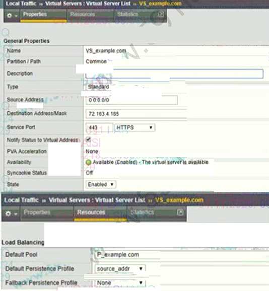configuration of a Virtual Server to include a Fallback Persistence Profile.