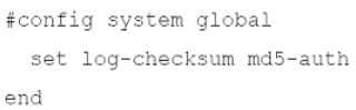The command set log-checksum md5-auth configures FortiAnalyzer to generate an MD5 hash for