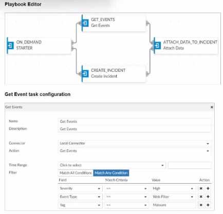 This answer matches the conditions set in the playbook filter configuration and the events listed in