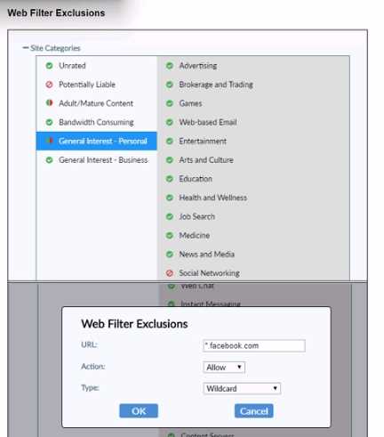 This configuration means that FortiClient will allow access to Facebook and its subdomains.