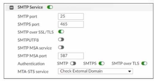 In addition to selecting Check External Domain in the MTA-STS service field, what else must an