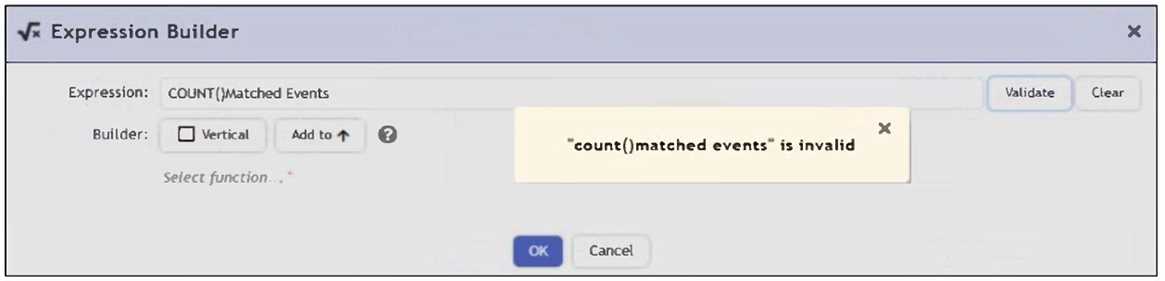 An analyst is trying to identify an issue using an expression based on the Expression Builder settings