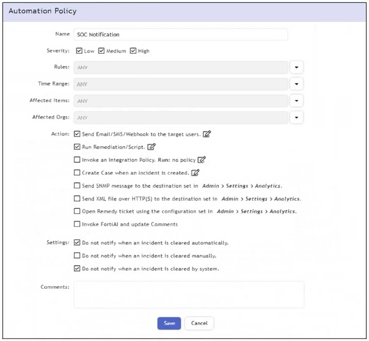 The automation policy has the option "Do not notify when an incident is cleared manually" enabled.