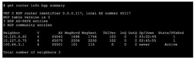 Refer to the exhibit, which shows the output of get router info bgp summary.