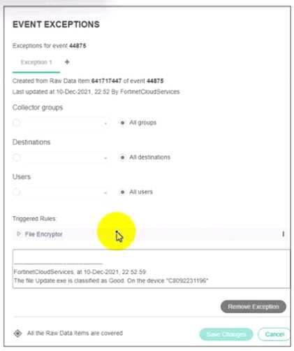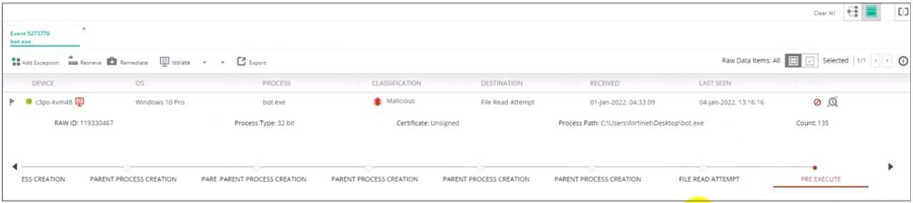 The FortiEDR axe classified an event as inconclusive, out a few seconds later FCS revised the