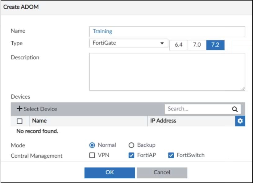 An administrator would like to create three ADOMs on FortiManager with different access levels based on departments.