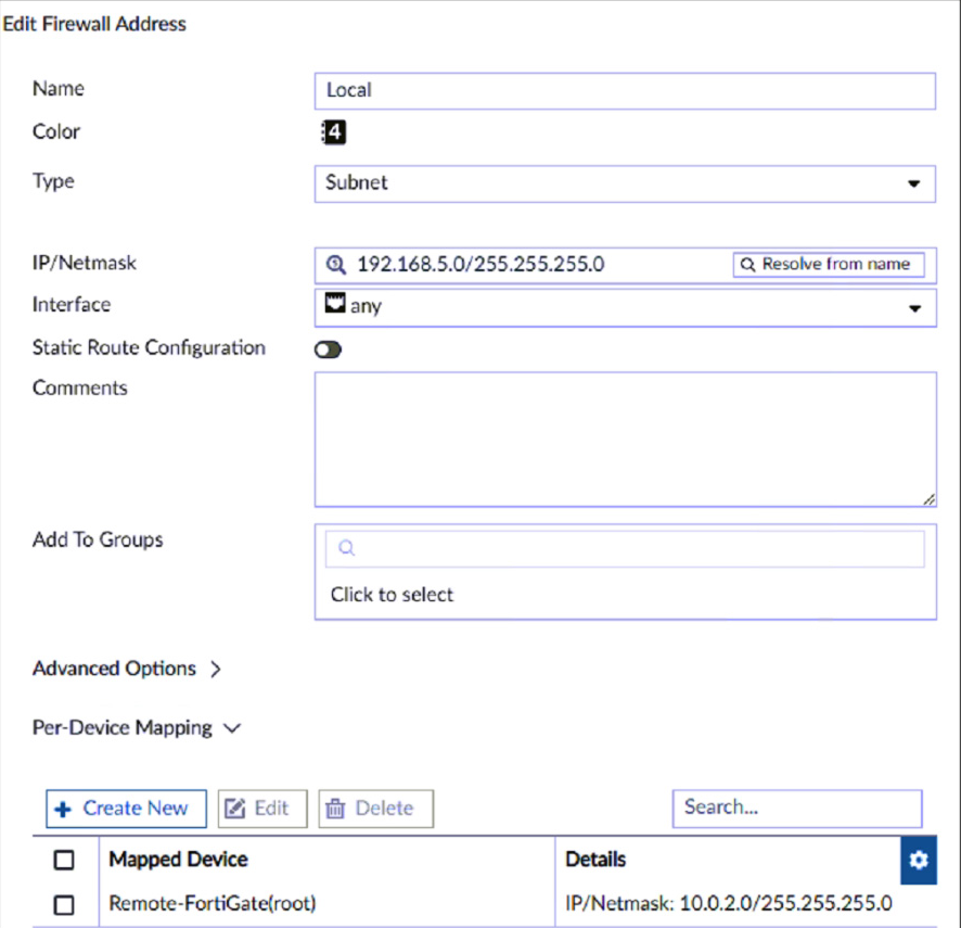 An administrator has created a firewall address object, Local, which is used in the Remote-FortiGate policy package.