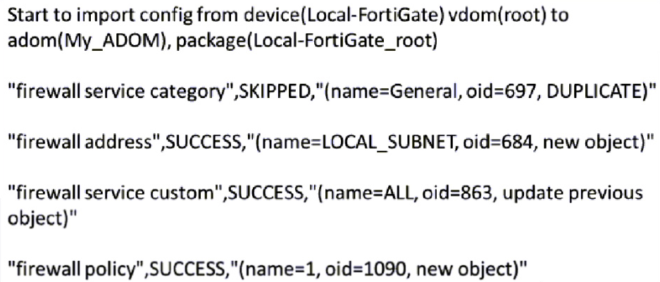 Given the configuration shown in the exhibit, how did FortiManager handle the service category named General?