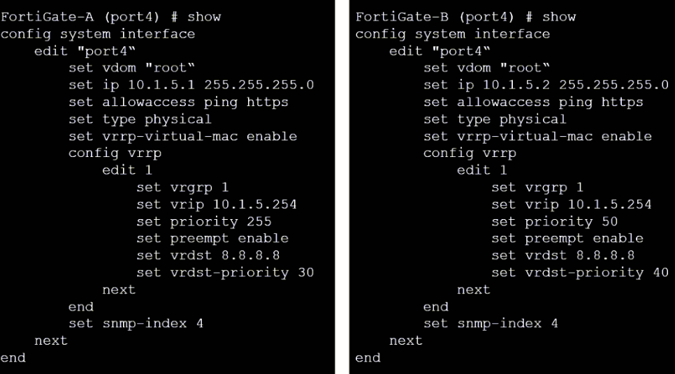 Refer to the exhibit, which contains the partial interface configuration of two FortiGate devices.