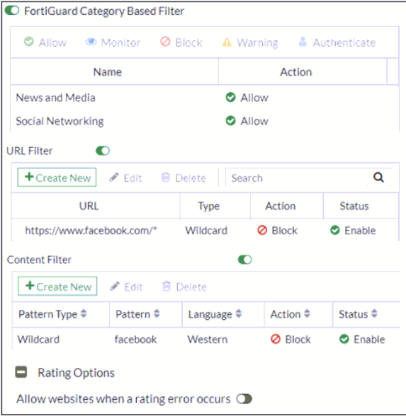 Refer to the exhibit, which shows a partial web filter profile configuration.