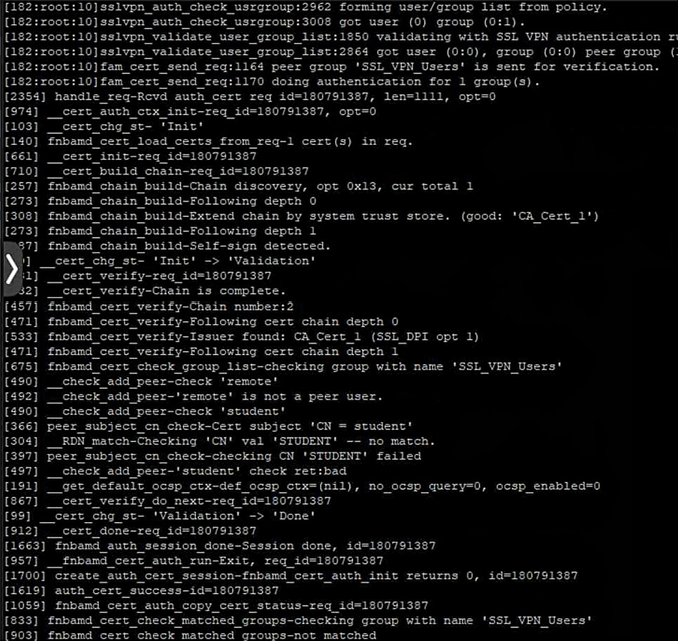 User student is not able to log in to SSL VPN.
