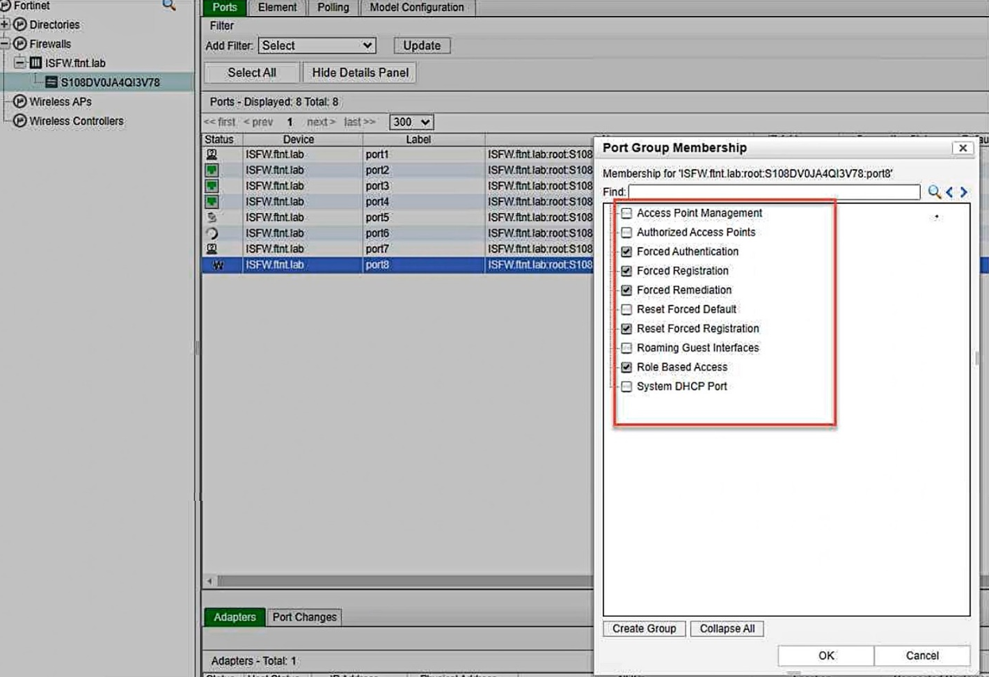 Which port group membership should you enable on FortiNAC to isolate rogue hosts?