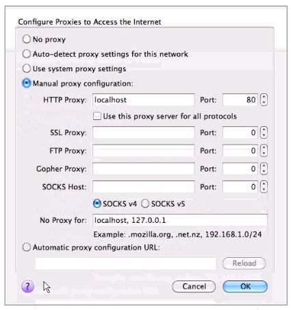 verifying the proxy is running, you ask him to open up his browser configuration, as shown in the
