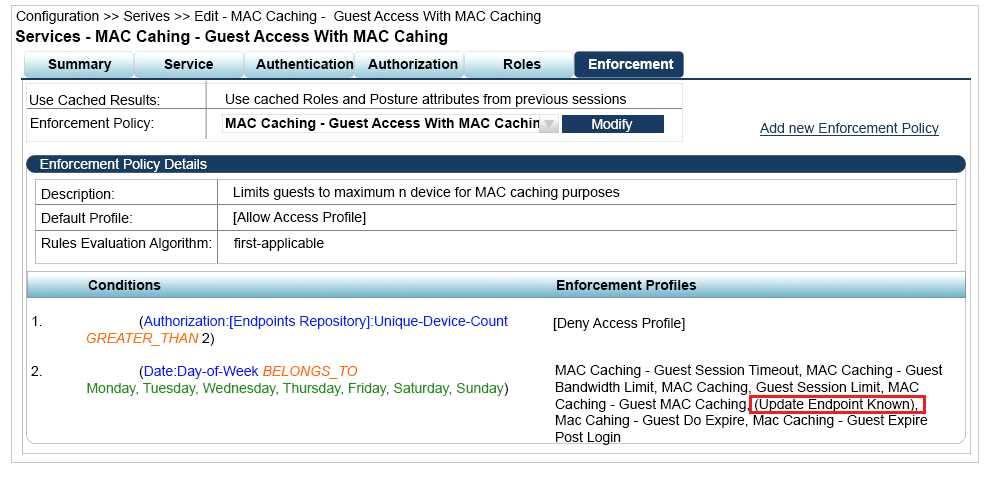 Reference: ClearPass Policy Manager 6.5 User Guide (October 2015), page 94