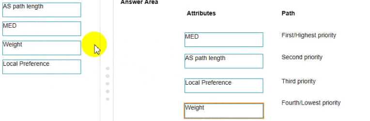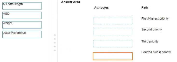 Match the BGP path selection criteria attributes (Each option may be used once, more than once, or